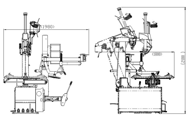 1) Automatyczna zmieniarka opon, pochylenie kolumny do tyłu i do przodu oraz blokada kolumny mogą być uzupełnione pneumatycznie.