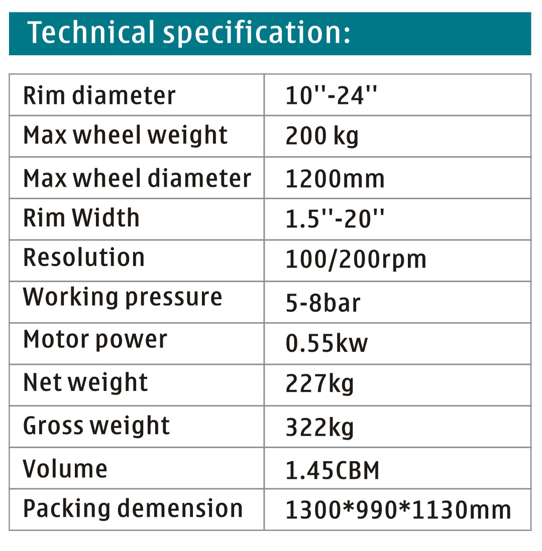 Specyfikacja techniczna wyważarki do kół samochodów ciężarowych WB-6080: